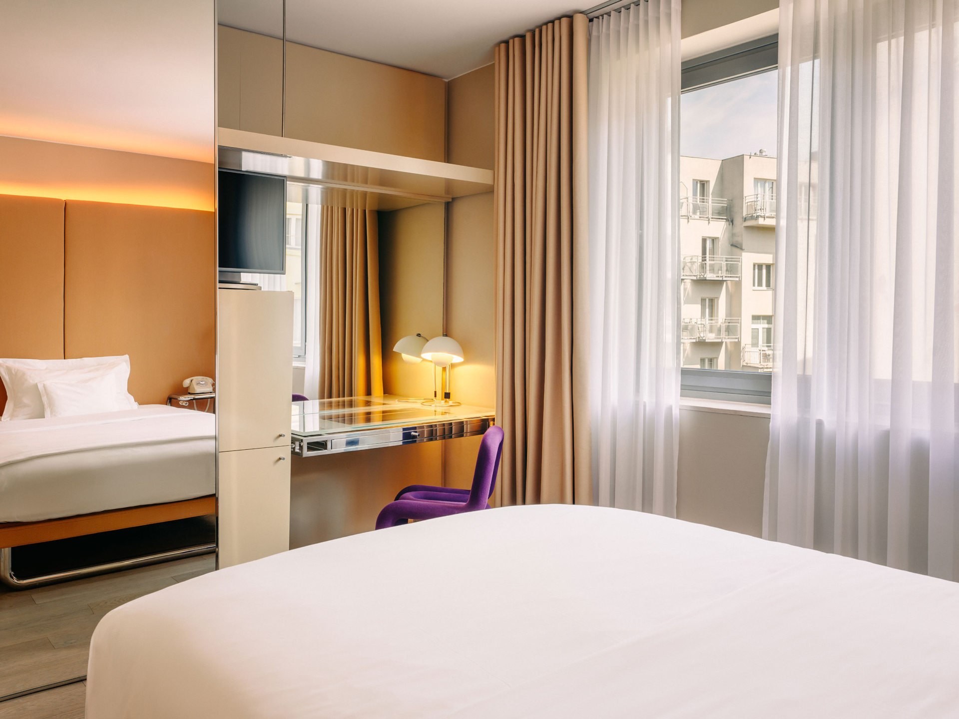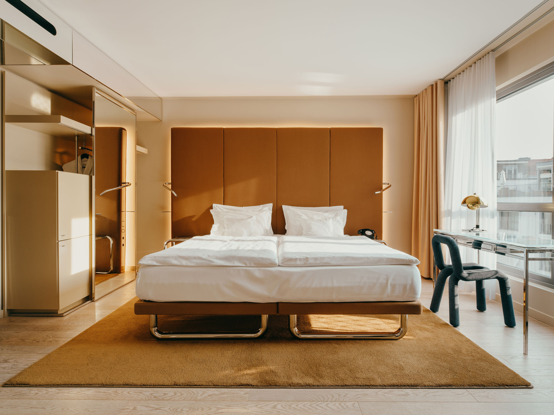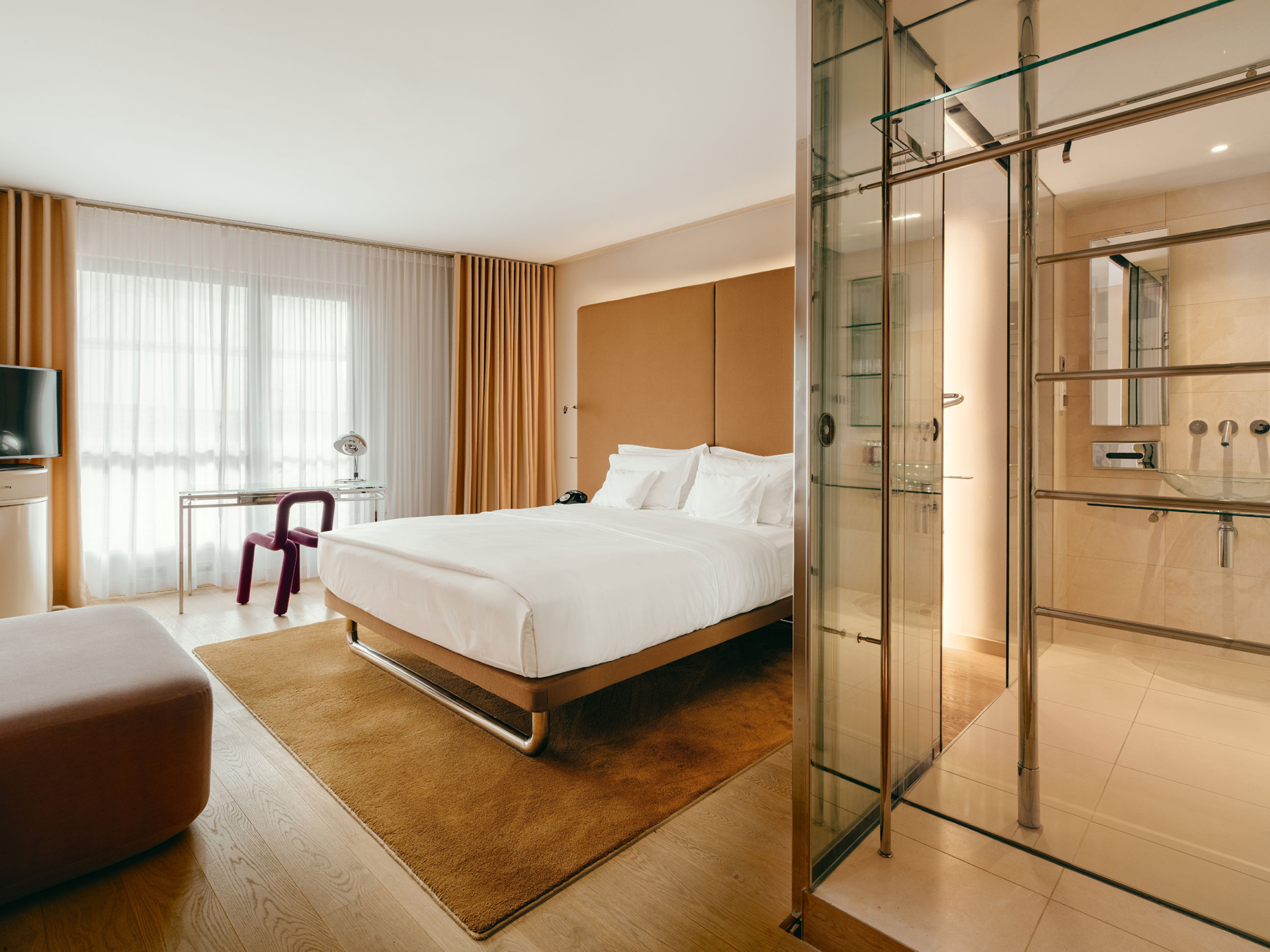 S výhledem na město nebo hotelovou zahradu se tyto pokoje nacházejí na 7. a 8. patře. King-size postele a okna od podlahy ke stropu spojují komfort a světlo v dokonalé rovnováze. Sledujte, jak se energie města na konci dne mění, jak jinak než s elegantním koktejlem v ruce — když si tento pokoj zarezervujete, první aperitiv v lobby baru je na nás!