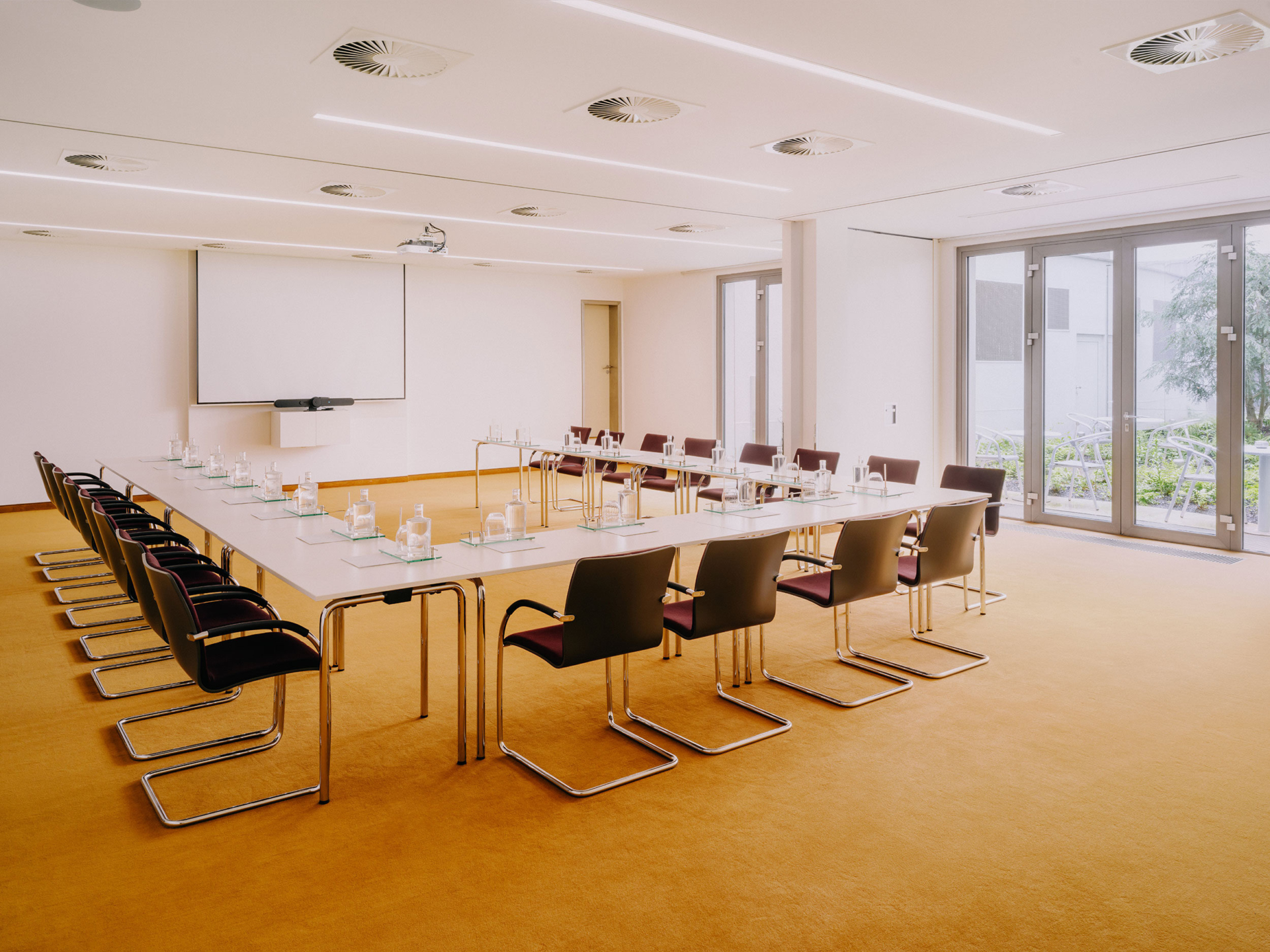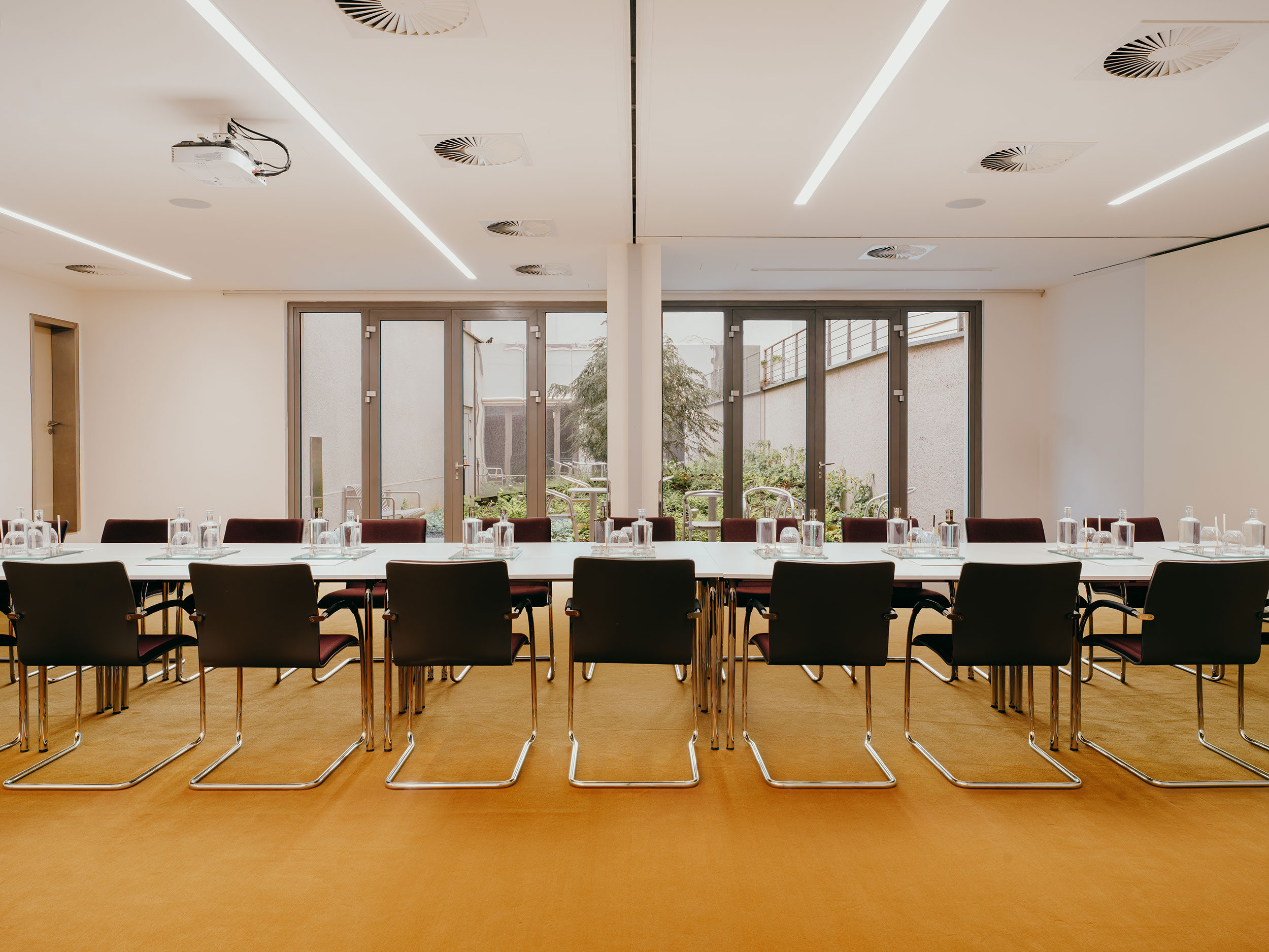 Sun is a spacious and bright conference room with garden access, perfect for presentations and gatherings.